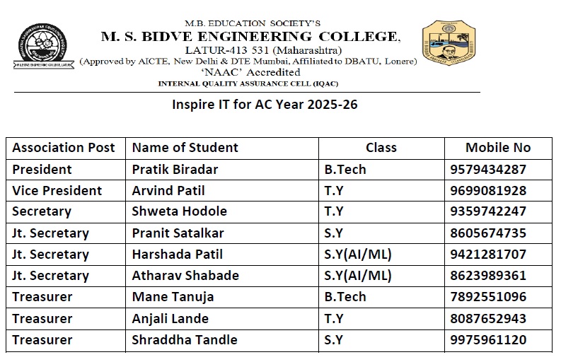 PEO3: Demonstrate ethical values, leadership, teamwork, communication skills, and contribute responsibly to society using intelligent technologies.