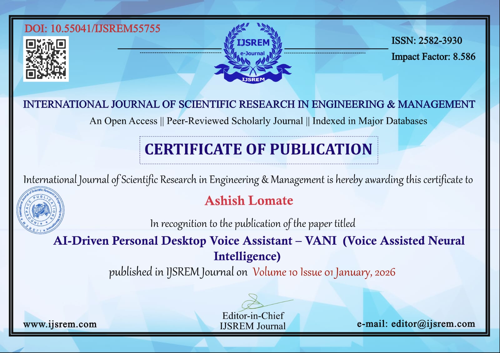 | Email Address | aishwaryabolegave@gmail.com | |